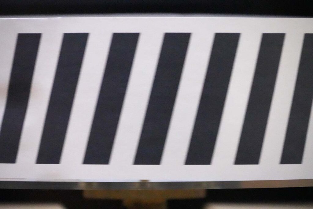 画面の右から左に移動する縦縞を1/500秒のシャッタースピードで撮影