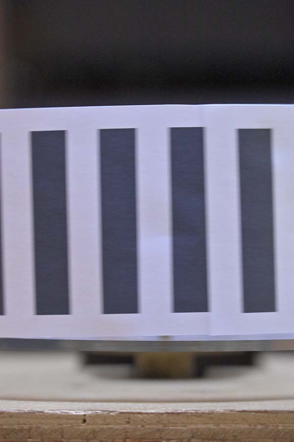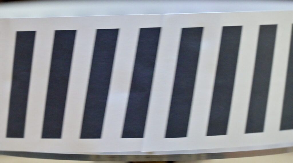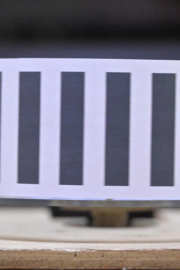 SONYのFX30はローリングシャッター方式のセンサーを搭載したカメラです。このカメラでローリングシャッターによる歪みの現れ方をみてみます。円筒に縦縞を印刷したものを回転させることで、横に移動する物体を簡易的に再現します。ここではFX30のスチル写真モードでテストしています。