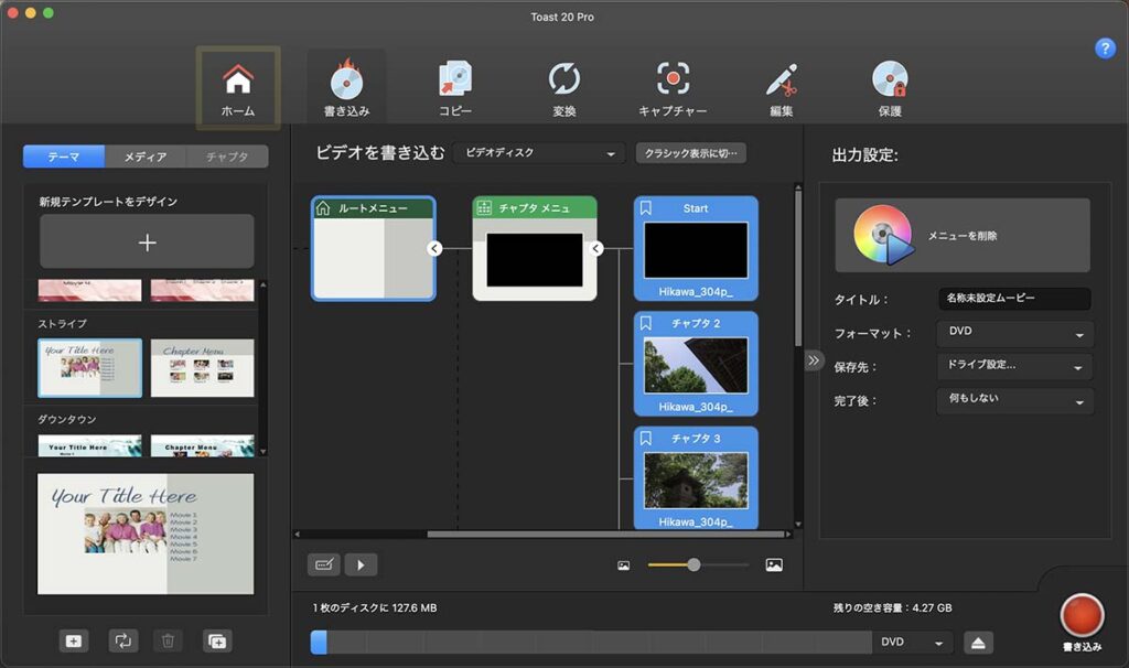 Toast20proのメニュー編集表示でチャプター名付きDVDを作成2〜toastでの作業