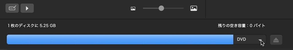この画像の場合、DVDに記録する容量は5.25GB必要なので、「DVD DL(片面二層ディスク)」に設定する必要がある