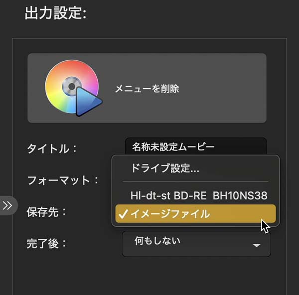 ディスクに直接記録するかイメージディスクとして記録するかの設定は、画面右列の「保存先」の項目で設定します(pc13_fig_08)。