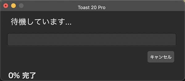 プログレスバーには、ディスクへのデータの書き込みの進捗のみが表示されているようで、エンコードの進捗状況は反映されないようです。エンコードの進捗も表示してくれないと、何らかのエラーで処理が止まっているのではと思えるほど0%の状態が長く続くので、改良して欲しいところです。