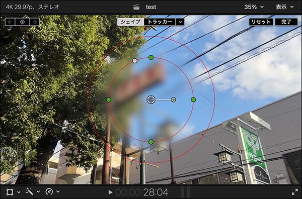 手動でのアニメーション処理については、「FCPで四角いぼかし」の「シェイプマスクのアニメーション」をご覧ください。