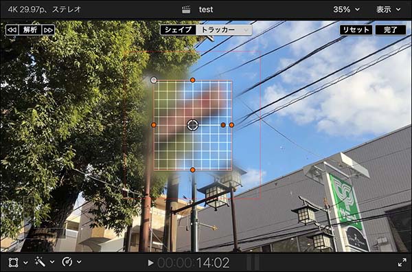 解析精度が上がって、あらゆる映像の動きに問題なく対応できるか、シェイプマスクやオブジェクトの位置情報に対してキーフレームを自動生成するといった動作でないと、解析に問題がある場合の修正がなかなかに面倒です。それでも、パソコンの処理能力の向上に伴って解析の速度は速くなっています。クリップの長さにもよりますが、とりあえず自動解析を試してみると、案外そのまま使える仕上がりになる場合もあるかもしれません。