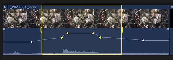 複数のキーフレームが追加されたクリップの場合も、クリップを選択して、