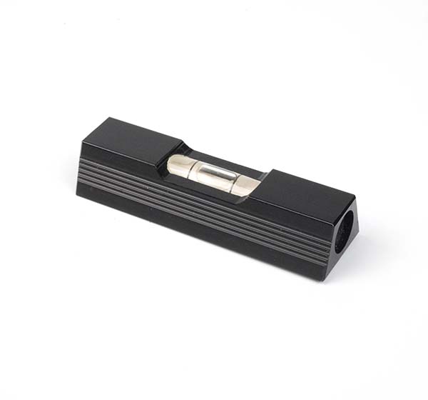 写真tr09_photo_01の水準器は以前購入したもので、気泡を閉じ込めたパイプの高さを調整するネジが設けられています。なお、パイプの端に取り付けられたカバーネジが片側だけ無くなっていますが、使用中になくしてしまったためです。気にしないでください。